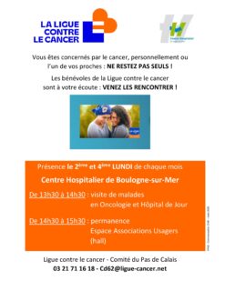 Présence le 2ème et 4ème lundi de chaque mois au Centre Hospitalier de Boulogne-sur-Mer