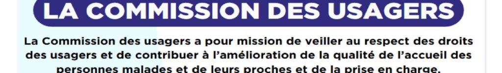 Cette commission est indépendante, elle a pour mission de veiller au respect des droits des usagers et de contribuer à l’amélioration de la qualité, de l’accueil des personnes malades et de leurs proches et de la prise en charge.