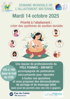 Dans le cadre de la semaine mondiale de l’allaitement du 09 au 18 octobre 2025 rendez-vous le MARDI 14 OCTOBRE 2025 de 10h à 16h dans le hall du CHB.